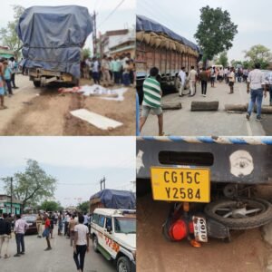 पामगढ़ धरदेई में धान से भरी ट्रक की चपेट में आने से बाइक सवार की दर्दनाक मौत, ग्रामीणों ने किया चक्का जाम