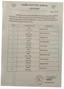 इसी दिन पार्टी ने 47 नगर पालिका अध्यक्षों के प्रत्याशियों की सूची भी जारी की। यह सूची प्रदेश अध्यक्ष किरणदेव ने घोषित की। प्रमुख उम्मीदवारों में मुंगेली से शैलेश पाठक, पेंड्रा से रितेश फरमानिया, डोंगरगढ़ से रमन डोंगरे, बेमेतरा से विजय सिन्हा, बालोद से प्रतिमा चौधरी, सूरजपुर से देवंती साहू, जशपुर नगर से अरविंद भगत, कोंडागांव से नरपति पटेल और कांकेर से अरुण कौशिक शामिल हैं।