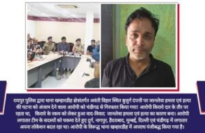 रायपुर पुलिस द्वारा थाना खम्हारडीह क्षेत्रांतर्गत अवंती विहार स्थित बुजुर्ग दंपत्ती पर जानलेवा हमला एवं हत्या की घटना को अंजाम देने वाला आरोपी को चंडीगढ से गिरफ्तार किया गया! आरोपी किराये दार के तौर पर रहता था, किराये के रकम को लेकर हुआ वाद-विवाद जानलेवा हमला एवं हत्या का कारण बना। आरोपी लगातार टीम के सदस्यों को चकमा देते हुए दुर्ग, नागपुर, हैदराबाद, मुम्बई, दिल्ली एवं चंडीगढ़ में लगातार अपना लोकेशन बदल रहा था। आरोपी के विरूद्ध थाना खम्हारडीह में अपराध पंजीबद्ध किया गया