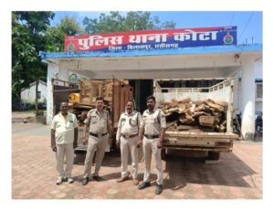 *पुलिस कप्तान रजनेश सिंह, ASP (ग्रामीण) अर्चना झा (रा.पु.से.) एवं SDOP नूपुर उपाध्याय के मार्गदर्शन में चलाए जा रहे ऑपरेशन प्रहार के तहत कोटा पुलिस को सूचना प्राप्त हुआ कि ग्राम लमकेना में संजय खांडे एवम सुरेश खांडे अपने घर में अवैध तरीके से लकड़ी रखे हुए है की सूचना पर ग्राम लमकेना पहुंच कर संजय खांडे एवम सुरेश खांडे के घर पर रेड कार्यवाही किया गया आरोपी सुरेश खांडे के घर से 107 नग सागौन साल और पल्ला पटिया सिलपट एवम सागौन से बना 3 नग कुर्सी सोफा 01 नग टी टेबल कीमती 700000 रुपए बरामद किया गया । आरोपी संजय खांडे के घर से कुल 166 नग सागौन बीजा साल के लकड़ियों से बना पल्ला पटिया खुरा सिलपट एवम अन्य सामान कीमती 500000 रुपए को बरामद किया गया है ; जप्त किए गए साल एवम सागौन के लकड़ियों को वन विभाग को विधिवत सुपुर्द किया गया है।