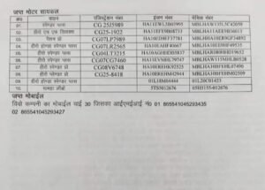 1. स्पलेन्डर प्लस क्रमांक CG 25 J 5989 इंजन नम्बर HA11EWL5B03995, चेचिस नम्बर MBLHAW135L5C42059।