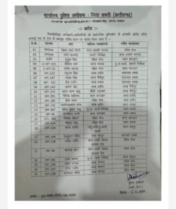 इस तबादले में थाना प्रभारी सहित अन्य कई पुलिसकर्मियों को नई जिम्मेदारियां सौंपी गई हैं। इस सूची में थानों में तैनात पुलिसकर्मियों के नाम और उनके नए पदस्थापन क्षेत्र का विवरण शामिल है, जो जिले में सुरक्षा और प्रशासनिक सेवाओं में सुधार के लिए है।