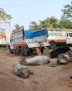 #🔺आमजन की सूचना पर गौ-वंश से भरी पिकअप का फिल्मी स्टाईल में पीछा कर वाहन के पहिया में कांटा से पंचर कर कुल 08 नग मवेशी को बचाया गया,