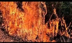 भीषण गर्मी में लखनी देवी पहाड़ियों में लगी भीषण आग, फायर ब्रिगेड के इंतज़ार में ग्रामीणों ने खुद बुझाई आग